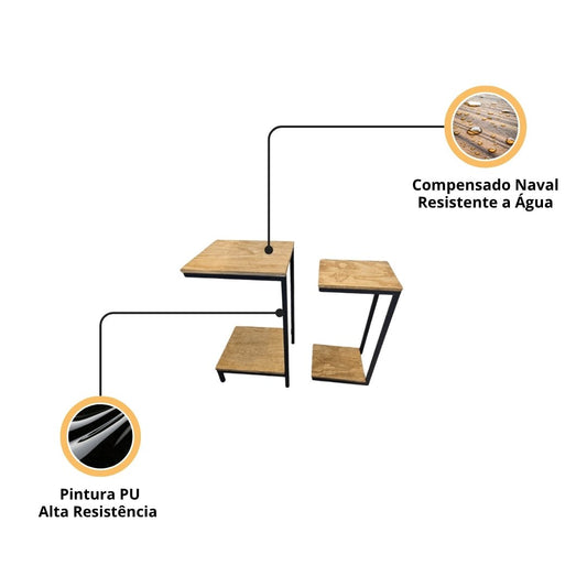 Mesa de apoio lateral industrial em S 69 x 25 x 45