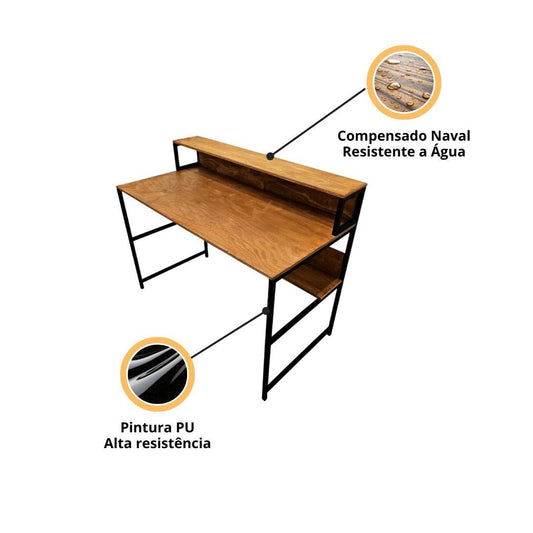 Mesa De Escritório Malbe Com Prateleiras Industrial