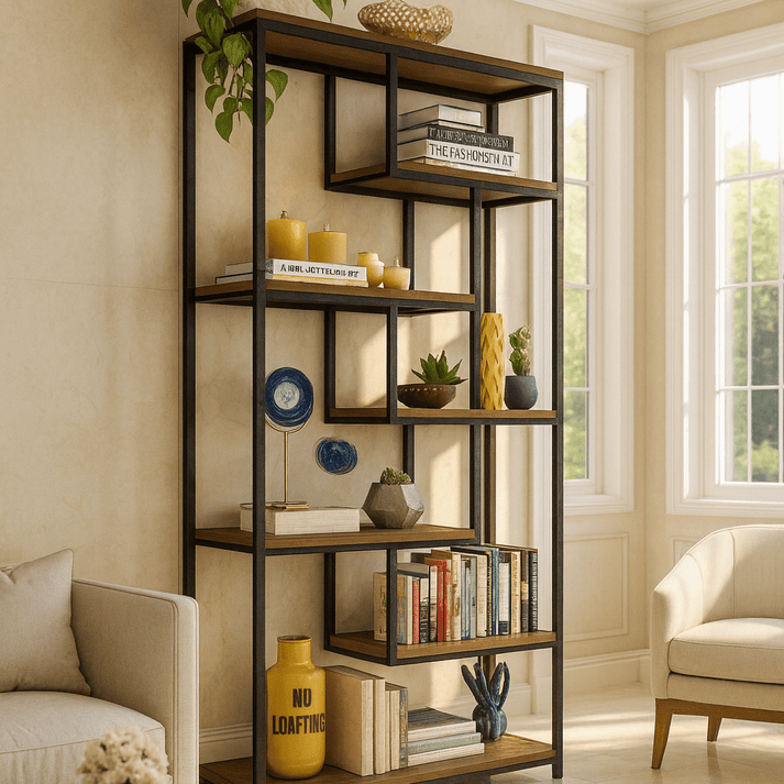 As prateleiras de parede são indispensáveis para quem busca otimizar o espaço vertical. Elas são perfeitas para exibir livros, plantas e itens decorativos, mantendo a organização e adicionando personalidade. A Prateleira industrial Stylus e a Prateleira industrial Sote da Metaloart são exemplos de como o design industrial pode ser leve e funcional, liberando o chão e criando um ponto focal interessante.